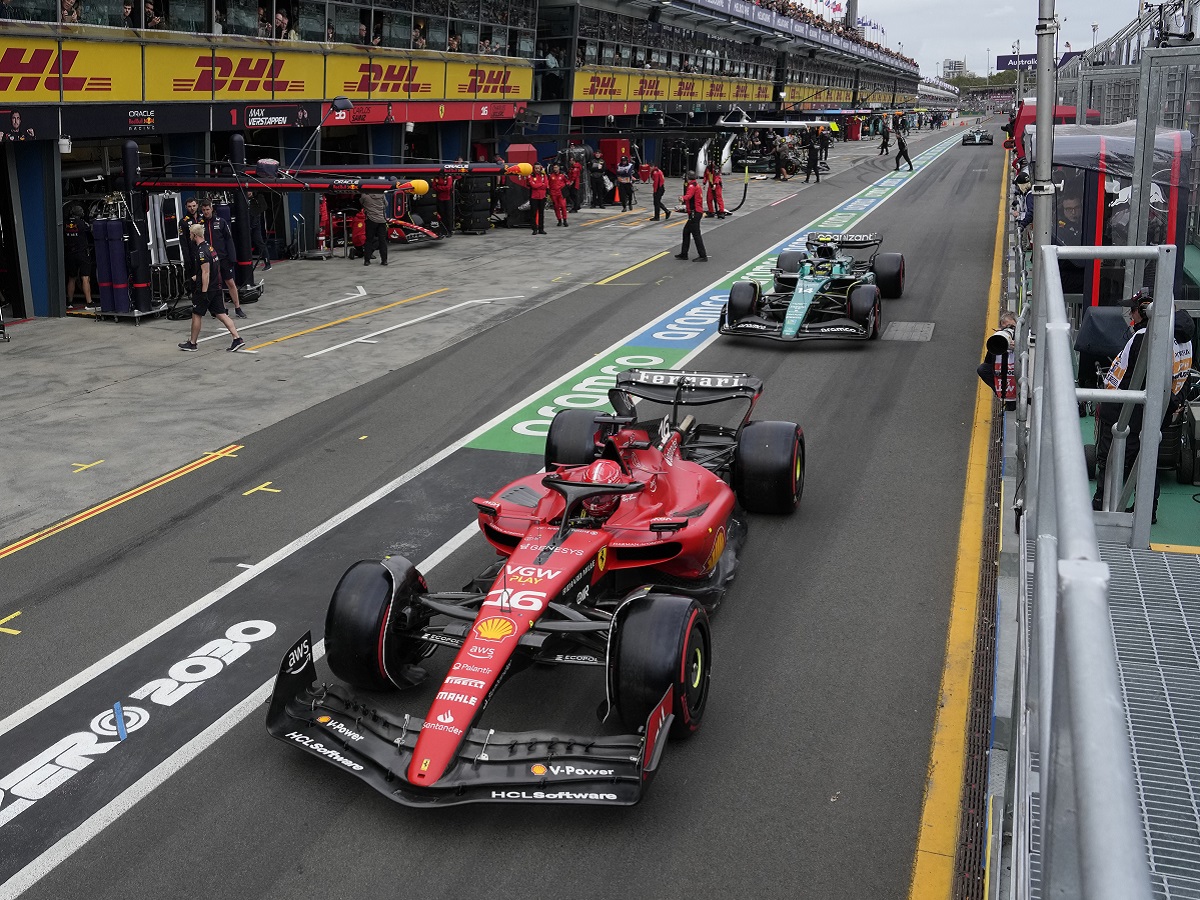 Formula One F1 – Australian Grand Prix – Melbourne Grand Prix Circuit, Melbourne, Australia – April 1, 2023 Ferrari’s Charles Leclerc and Aston Martin’s Fernando Alonso before qualifying Pool via REUTERS/Simon Baker